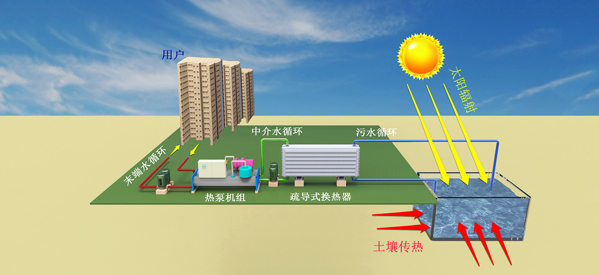 最后,40℃左右的末端系統(tǒng)水經(jīng)末端泵輸送,同樣在配置合理有效狀態(tài)下進入熱泵機組進行換熱,將熱泵機組從低溫那里轉(zhuǎn)化來的高溫熱量吸收,再以47℃左右
